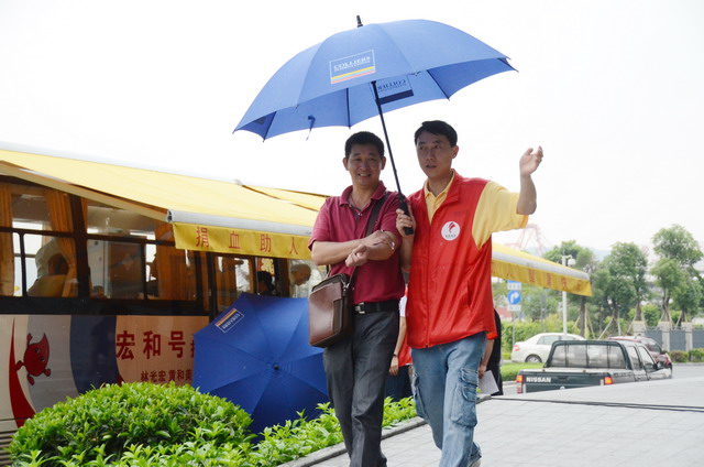 活動(dòng)當(dāng)時(shí)時(shí)有小雨,志愿者熱心打傘護(hù)送獻(xiàn)血的愛(ài)心人士回大樓